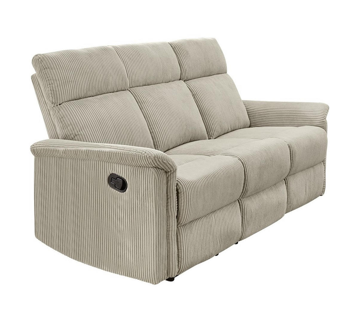 Mit diesem gemütlichen Relaxsofa wird jeder Fernsehabend zur absoluten Entspannung. Die ergonomisch geformten Sitze ermöglichen ein entspanntes Sitzen für drei Personen. Dank der halbautomatischen Relax-Funktion lassen sich die zwei äußeren Plätze in unterschiedliche Positionen bringen bis zur angenehmen Liegeposition, die zum Erholen einlädt. Machen Sie es sich in dieser tollen Couch so richtig bequem! Der pflegeleichte beige Cordstoff in modernen Design ist gemütlich und zeitlos und macht das Sofa zu einem wahren Ort der Erholung.