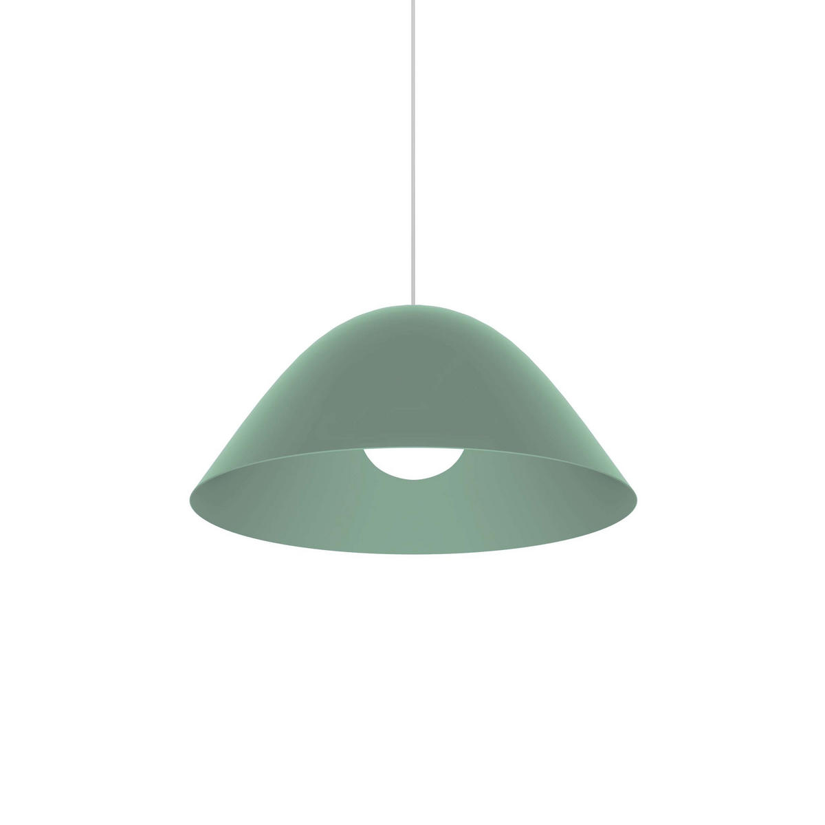 Die Form des Lampenschirms lässt das Licht nur nach unten durch, was Spore zu einer perfekten Pendelleuchte für die Beleuchtung des Küchen-, Esszimmer- oder Wohnzimmertisches macht. Das transparente PVC-Elektrokabel ist höhenverstellbar.