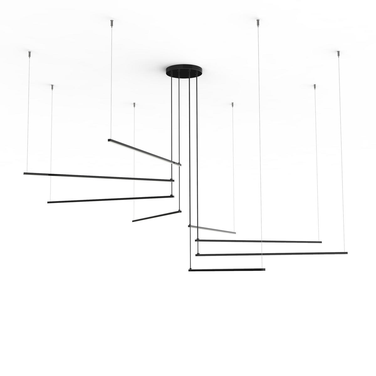 Die Radius-Pendelleuchte ist ein Produkt, das für Arbeitsumgebungen im Innenbereich oder die wichtigsten Räume Ihres Zuhauses geeignet ist. Die Lampe besteht aus acht ein Meter langen Aluminiumprofilen, in denen ein LED-Streifen aus unserer Produktion untergebracht ist. Die Lichtstreuung wird durch den satinierten PMMA-Diffusor gewährleistet, der auf der exponierten Seite des Profils untergebracht ist. Die beiden Tragseile ermöglichen eine einfache Höhenverstellung der Leuchte.