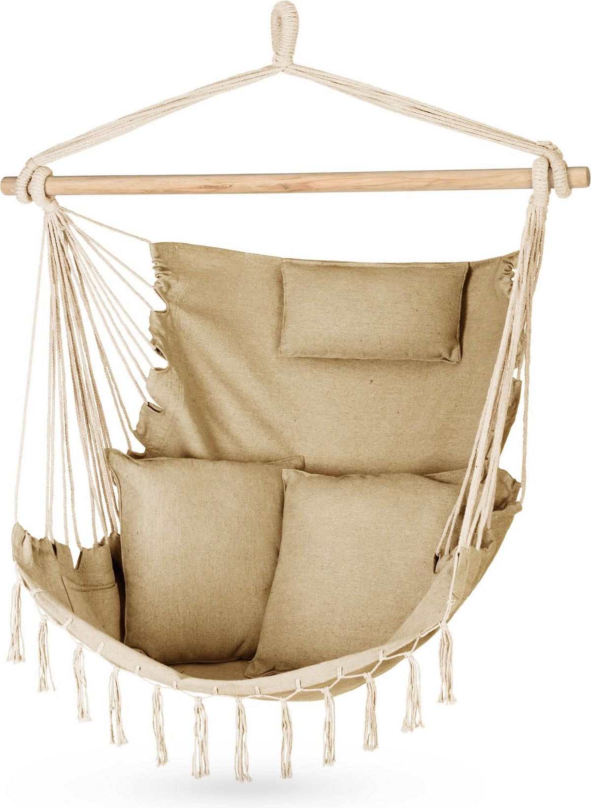 HÄNGESESSEL mit 3 Kissen 75/100/130 cm, bis 140 kg - Honig, Textil (100/130/75cm) - Luverno