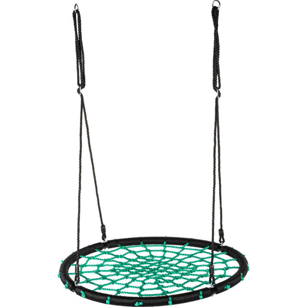 die Schaukel sowohl im Freien als auch im Haus verwendet werden kann, ist sie das ganze Jahr über einsetzbar.Die hier vorgestellte Schaukel besteht aus starken, geflochtenen Polyethylen-Seilen, die eine maximale Tragfähigkeit von bis zu 150 kg bieten. Dadurch ist es möglich, dass mehrere Kinder gleichzeitig auf der Schaukel spielen können. Der große Sitzdurchmesser von bis zu 100cm bietet