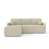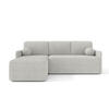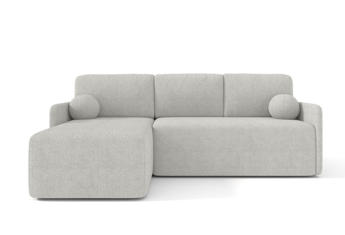 Ein vielseitiges Modell, das perfekt in Ihr Wohnzimmer passt. Die Ecke verfügt über eine Schlaffunktion und einen Behälter für Bettwäsche. Es besteht aus dem ikonischen BOUCLE-Stoff. Im Vergleich zur Mango-Kollektion zeichnet es sich durch eine runde Form und ein längliches, großes Rückenpolster aus.