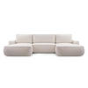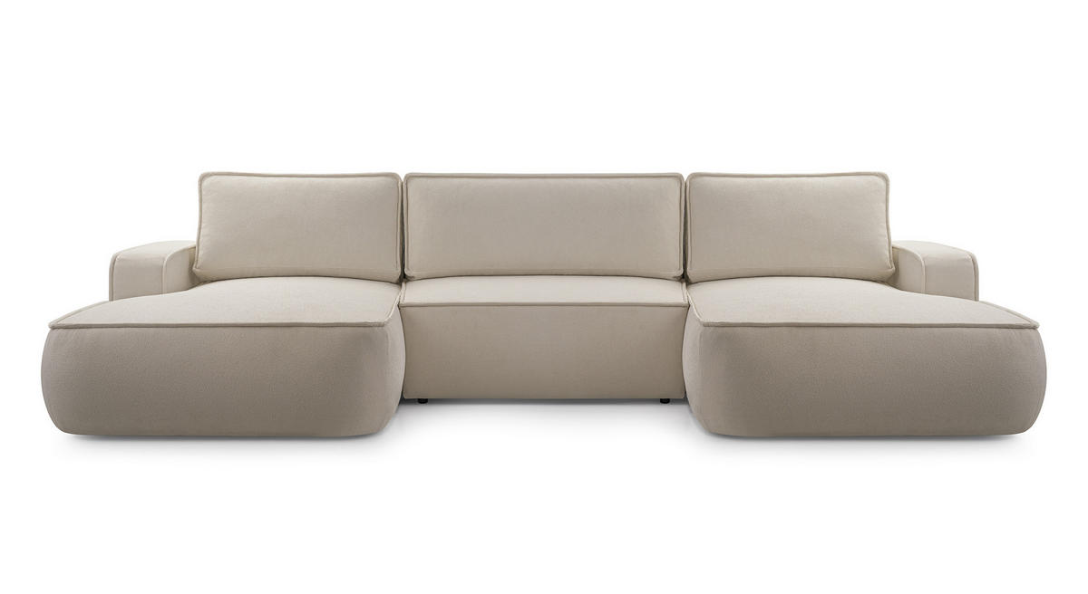Ein vielseitiges Modell, das perfekt in Ihr Wohnzimmer passt. Die Wohnlandschaft verfügt über eine Schlaffunktion und einen Behälter für Bettwäsche. Sie besteht aus dem ikonischen Boucle-Stoff.