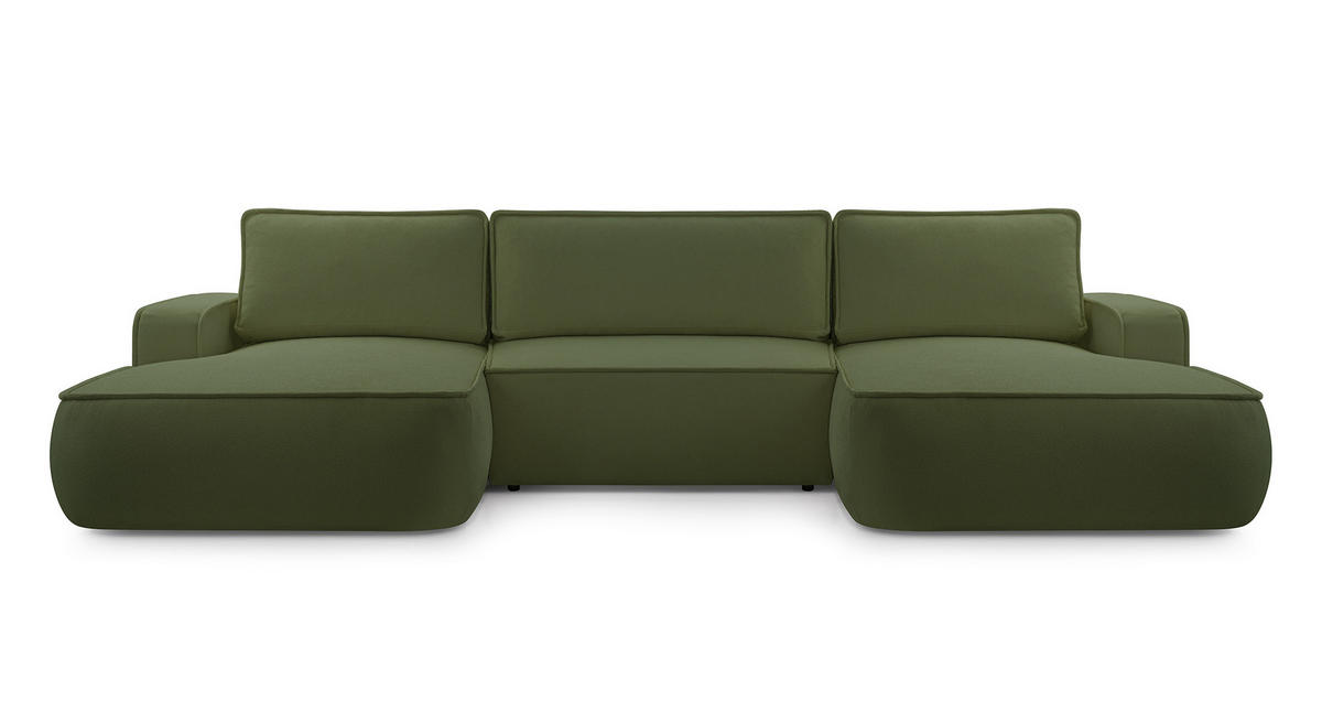 Ein vielseitiges Modell, das perfekt in Ihr Wohnzimmer passt. Die Wohnlandschaft verfügt über eine Schlaffunktion und einen Behälter für Bettwäsche. Sie besteht aus dem ikonischen Boucle-Stoff.