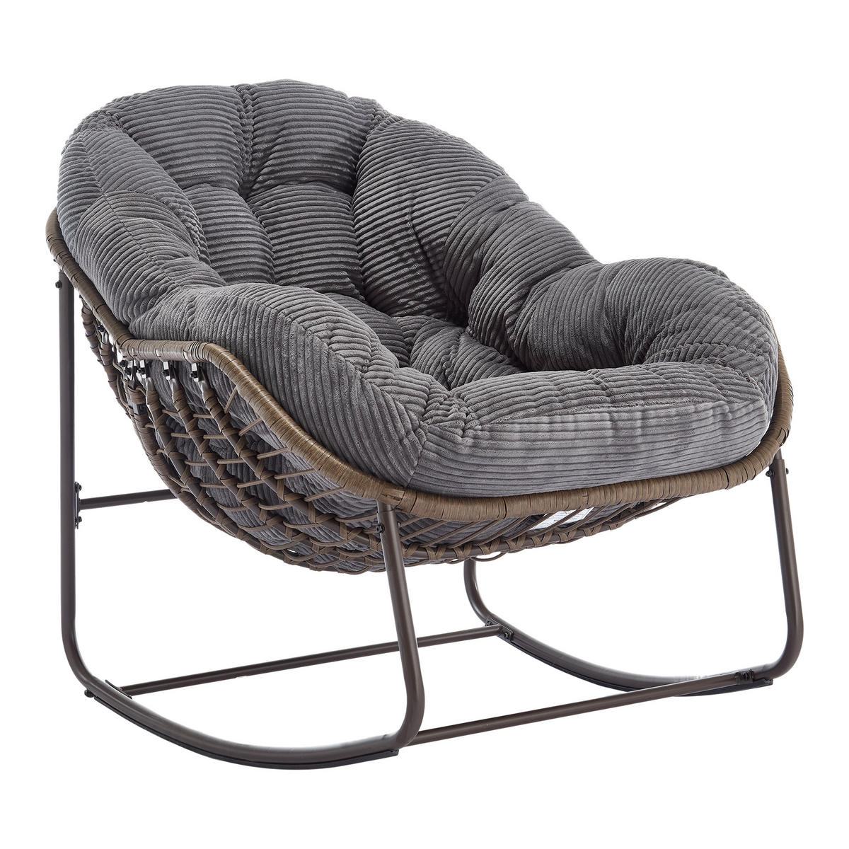 LVHOM SCHAUKELSTUHL Schaukelsessel,Rattanstuhl mit Stahlrahmen,Dunekelgrau-Cord