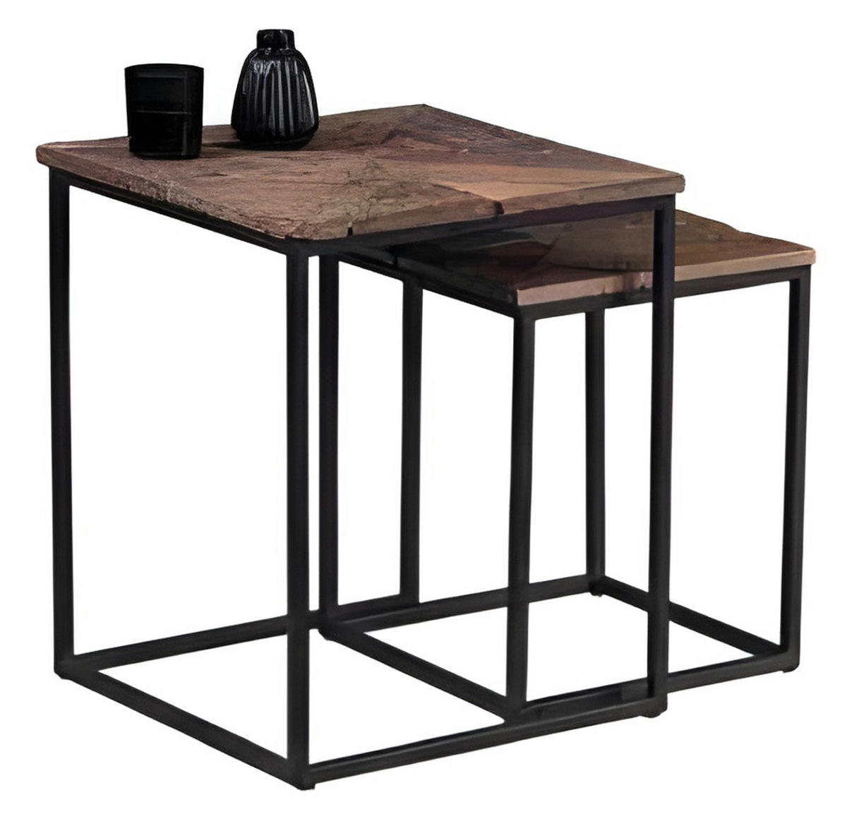 M2 Kollektion BEISTELLTISCH Alabama Recycletes Massivholz Metall 35/42/35 cm / 43/52/43 cm