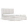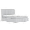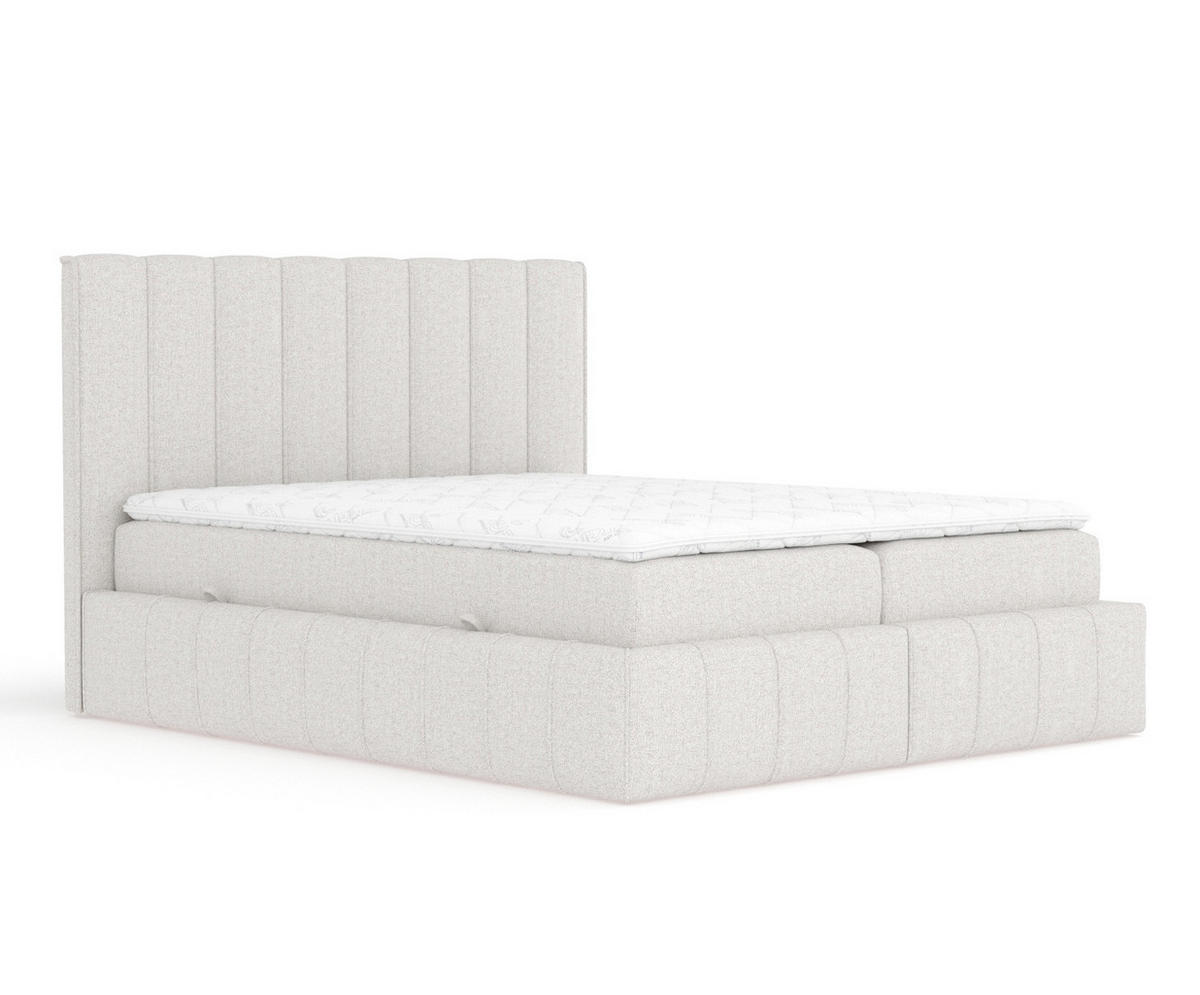 Das Kopfteil und der Sockel sind mit einer eleganten vertikalen Paspel versehen, die einen Hauch von Raffinesse verleiht. Im Sockel des Bettes verbirgt sich ein 28 cm hohes, seitlich zu öffnendes Staufach, das praktische Raumlösungen bietet. Das Bett MORETTI ist die perfekte Ergänzung für ein modernes und funktionales Schlafzimmer.