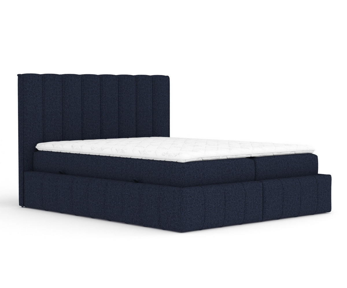 Das Kopfteil und der Sockel sind mit einer eleganten vertikalen Paspel versehen, die einen Hauch von Raffinesse verleiht. Im Sockel des Bettes verbirgt sich ein 28 cm hohes, seitlich zu öffnendes Staufach, das praktische Raumlösungen bietet. Das Bett MORETTI ist die perfekte Ergänzung für ein modernes und funktionales Schlafzimmer.