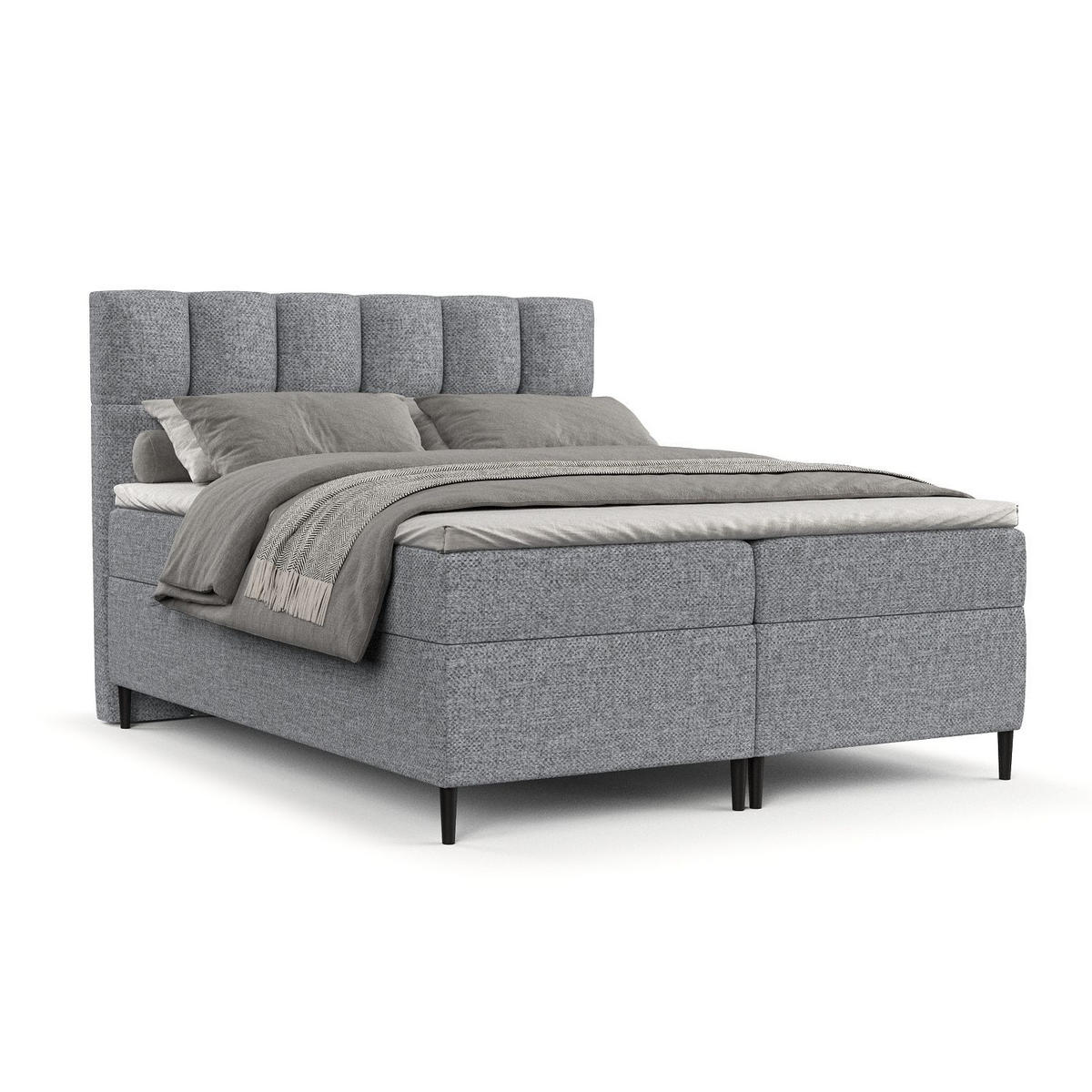 Das gepolsterte Bett OMBRE vereint stilvolles Design mit Alltagstauglichkeit! Sein Kopfteil mit kräftigen rechteckigen Nähten verleiht ihm eine trendige, geometrische Note, die es in jedem Schlafzimmer hervorstechen lässt. Die hohen schwarzen Beine verleihen ihm ein elegantes und luftiges Aussehen, perfekt für eine moderne Ästhetik.