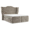 Das geräumige, seitlich zu öffnende Fach eignet sich perfekt zur übersichtlichen Aufbewahrung von Bettwäsche und anderen wichtigen Dingen. Mit seinem beeindruckend glamourösen Design und der robusten Konstruktion ist Royal ein Bett, das ebenso stilvoll wie praktisch ist.