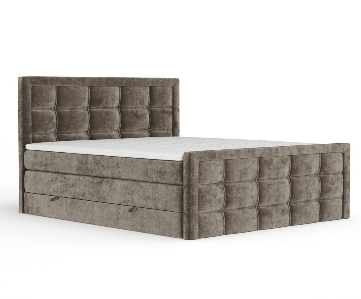 Dieses einzigartige Bett begeistert nicht nur mit einer Doppelmatratze, die Ihnen höchsten Schlafkomfort bietet, sondern auch mit einem eleganten, gesteppten Kopf- und Fußteil, die ihm einen schicken und modernen Stil verleihen.