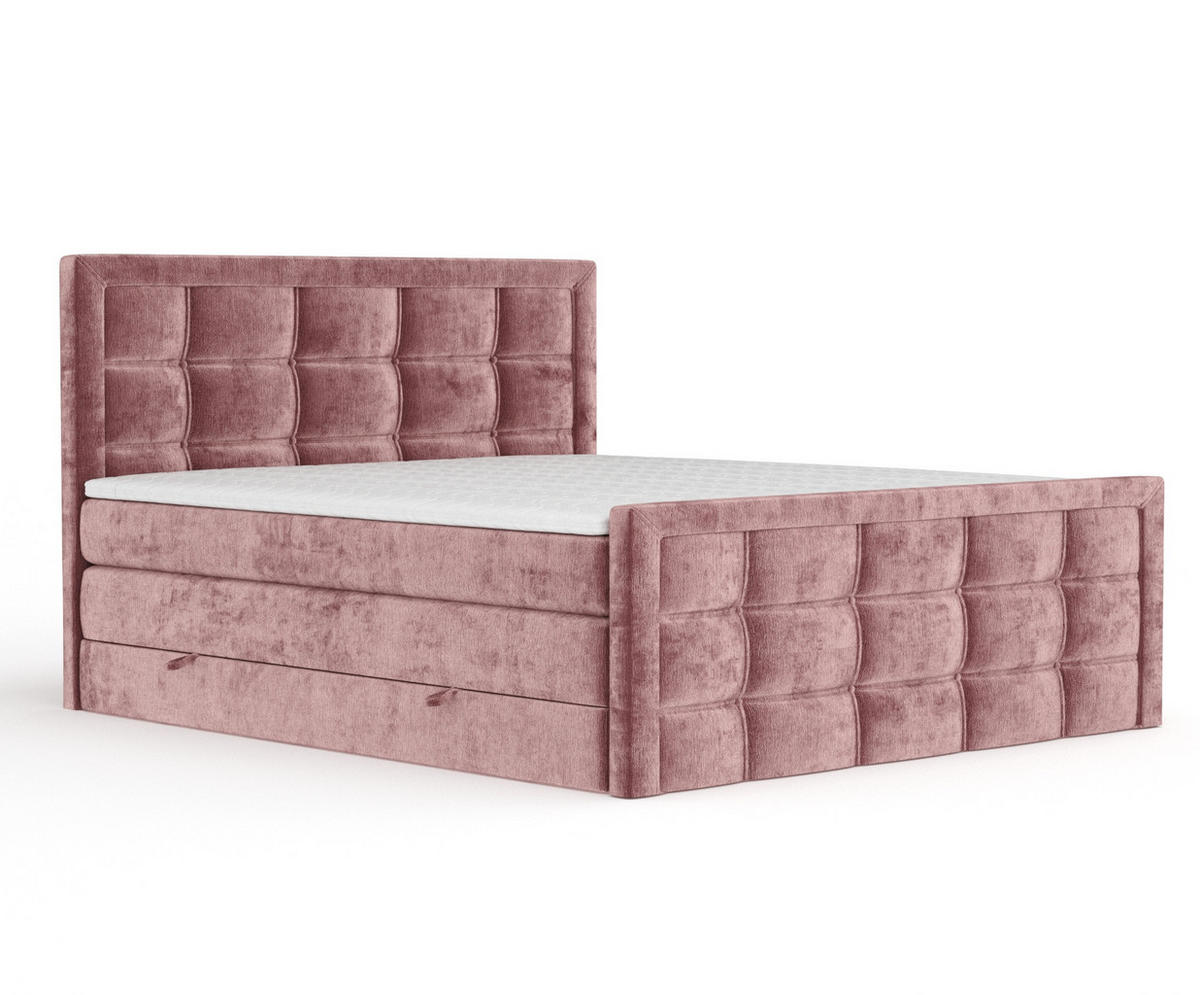 Dieses einzigartige Bett begeistert nicht nur mit einer Doppelmatratze, die Ihnen höchsten Schlafkomfort bietet, sondern auch mit einem eleganten, gesteppten Kopf- und Fußteil, die ihm einen schicken und modernen Stil verleihen.