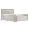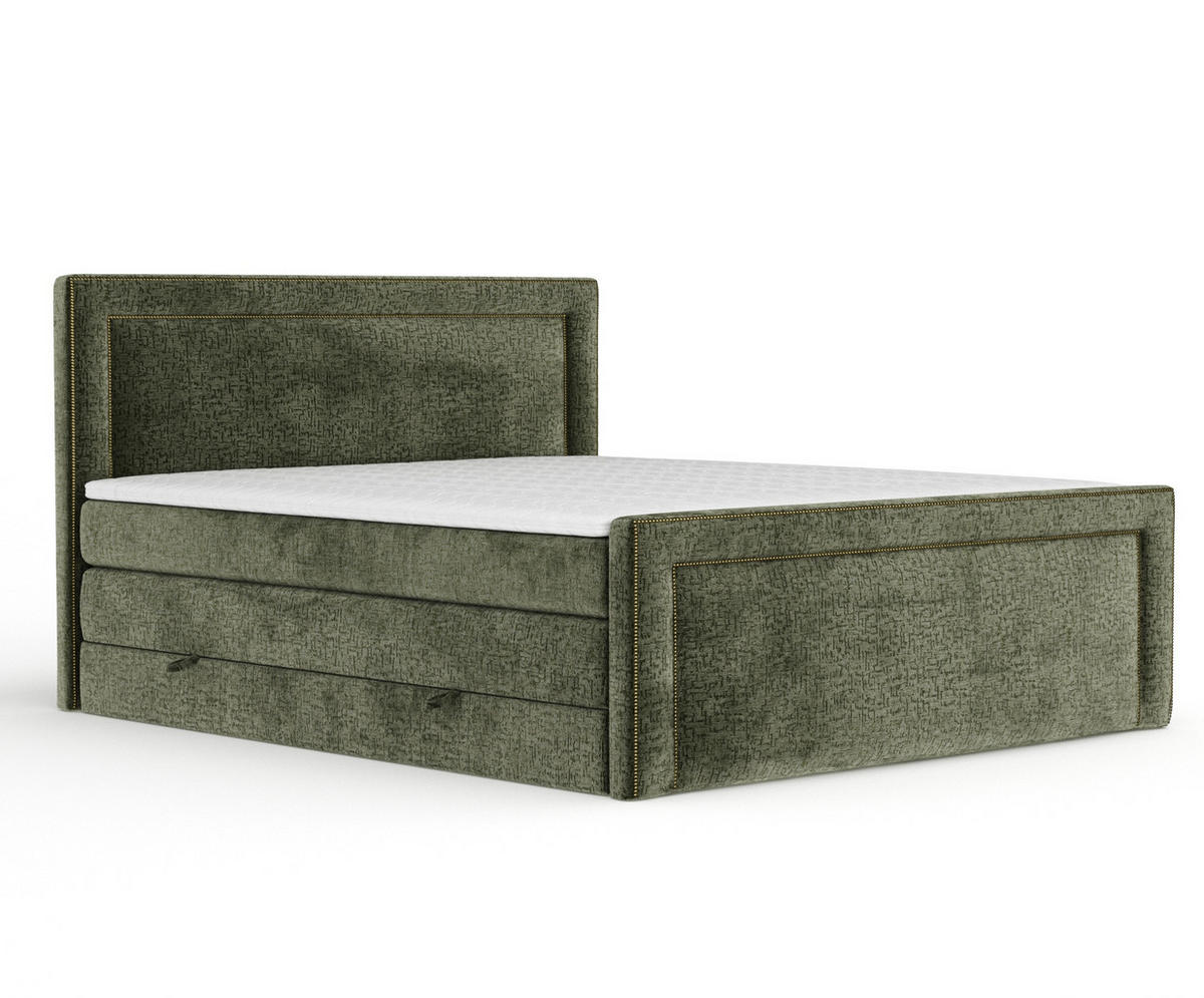 Dieses wunderschöne Bett verfügt nicht nur über eine Doppelmatratze für einen fantastischen Schlaf, sondern auch über ein stilvolles Kopf- und Fußteil mit zwei eleganten goldene Stiftleisten, die ein dezentes, aber beeindruckendes Design-Statement setzen.