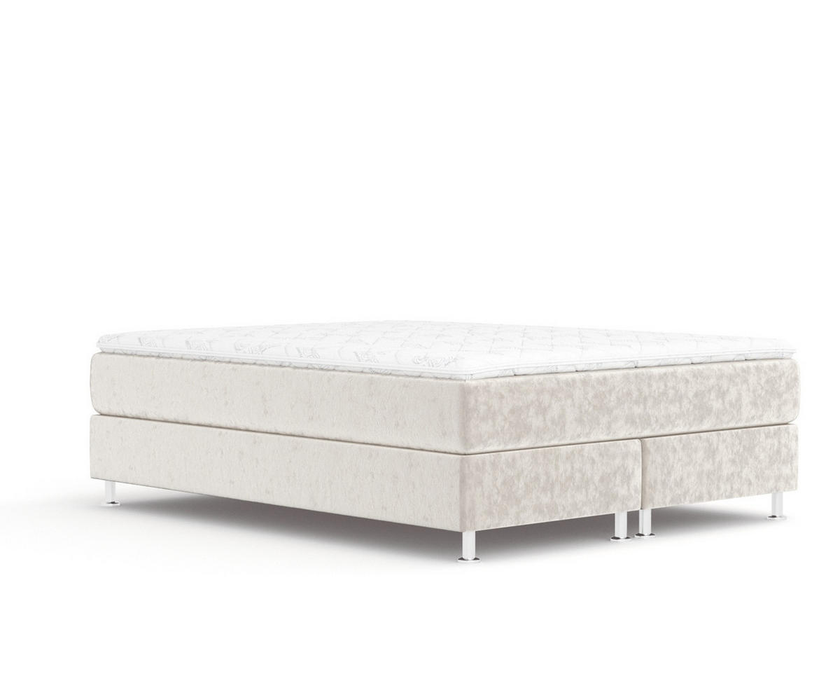 Die Matratze wird von einem soliden und stabilen Unterbau getragen, während die schlanken silbernen Beine dem gesamten Bett einen Hauch von Eleganz und Stil verleihen.