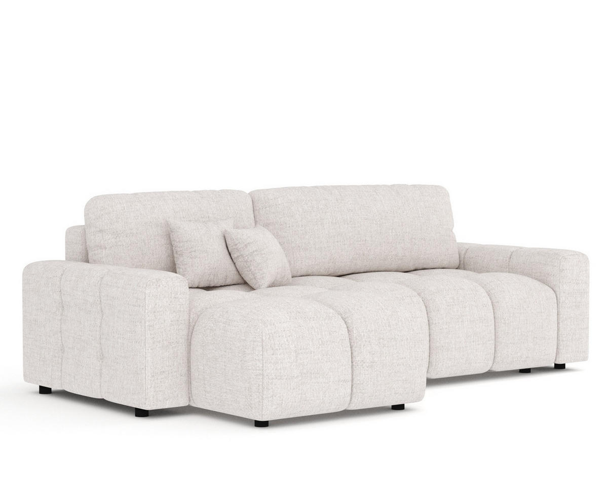 Das Ecksofa hat einen Sitz mit hochelastischem Polyurethanschaum und gewellten Federn für Komfort und guten Halt. Dank des Aufklappmechanismus verwandelt sich das Ecksofa in einen bequemen Schlafplatz.