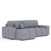 Das Ecksofa Ucci ist mit einem praktischen Behälter ausgestattet, der das Aufräumen des Wohnzimmers erleichtert. Zu seinem kompakten Design gehört eine kleine Ottomane, die den Komfort erhöht und es Ihnen ermöglicht, sich in verschiedenen Positionen bequem auszuruhen.