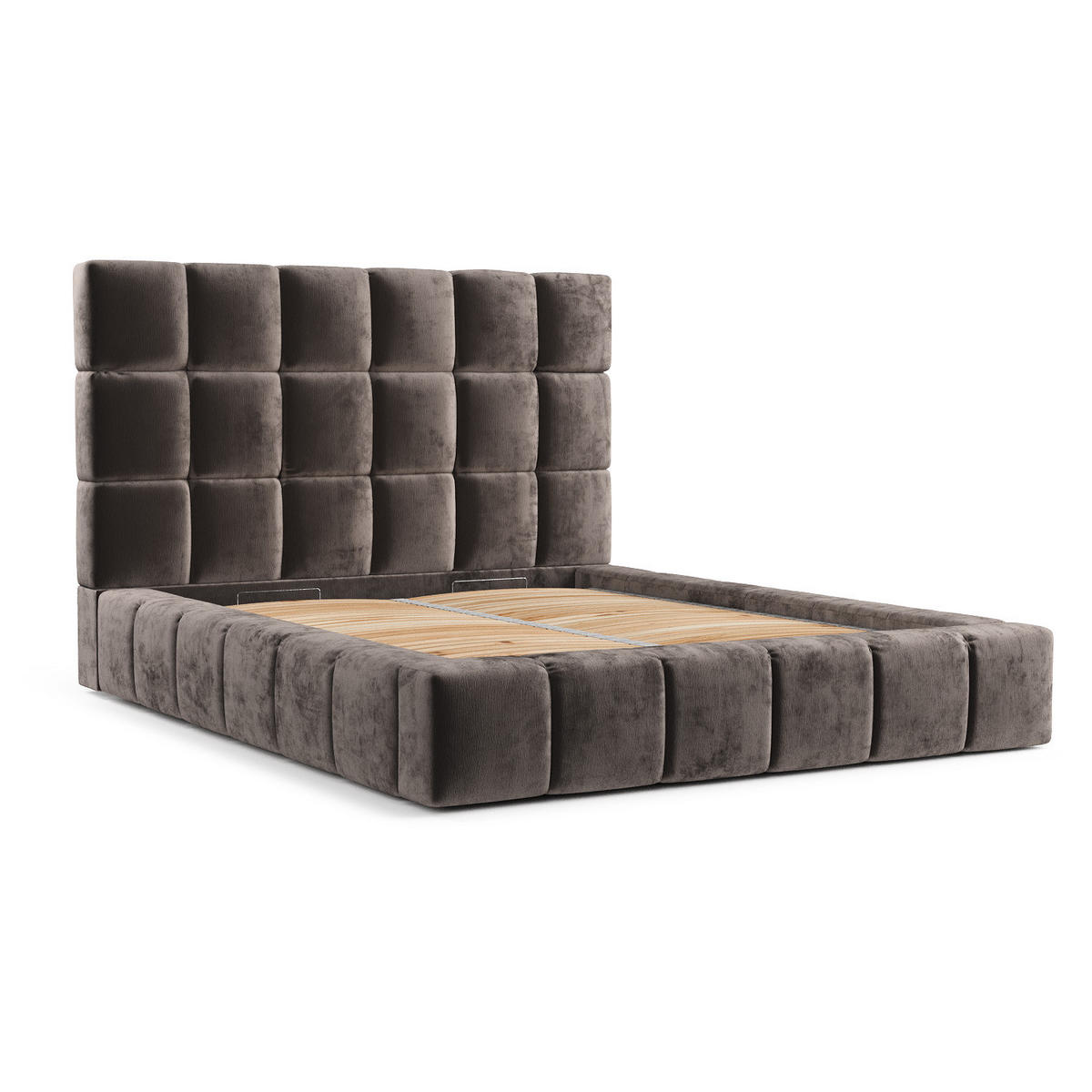 Das Bett Kendal Tres sieht nicht nur schön aus, sondern ist auch praktisch: Es verfügt über ein geräumiges Staufach, in dem Sie Bettwäsche, Decken oder andere Accessoires unterbringen können. Das macht es einfach, Ordnung im Schlafzimmer zu halten und den vorhandenen Platz optimal zu nutzen.