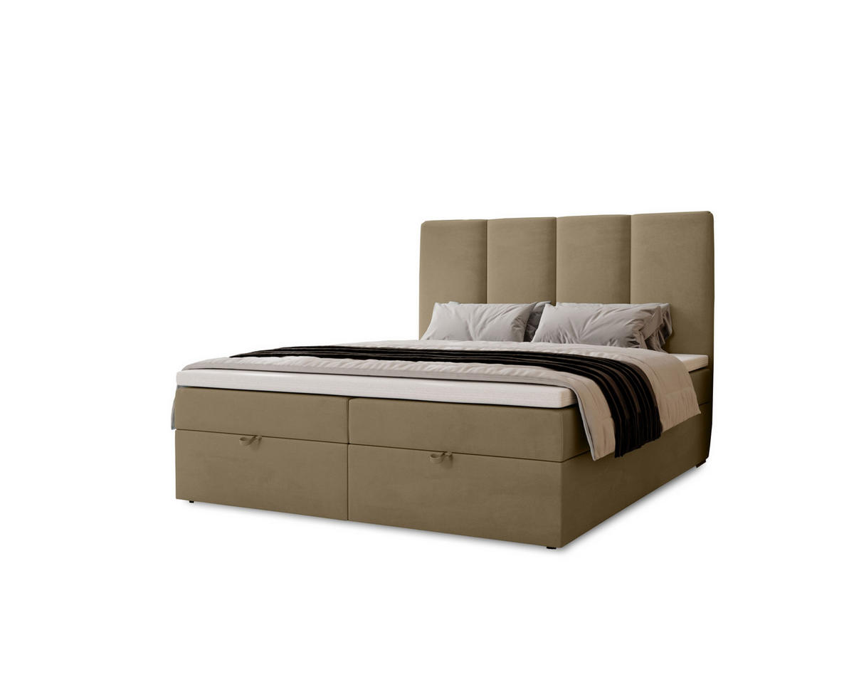 Marpur BOXBETT Malmo mit 2 Bettkästen, 160x200, Braun, Velourstoff, Doppelbett mit Bonell-Matratze und Topper