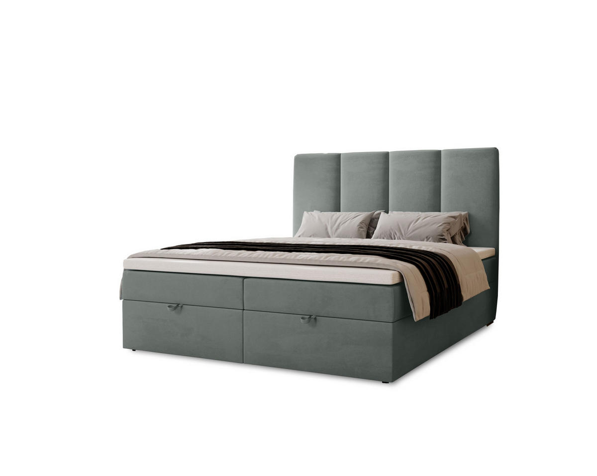 Marpur BOXBETT Malmo mit 2 Bettkästen, 180x200, Grau, Velourstoff, Doppelbett mit Bonell-Matratze und Topper