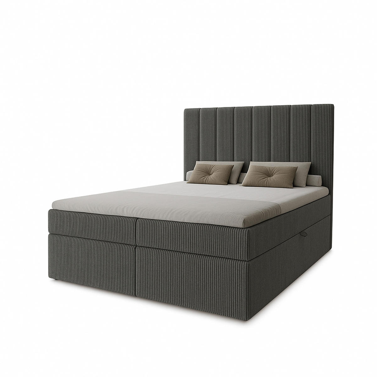 BOXBETT Nero mit 2 Bettkästen, 160x200, Farbe: Dunkelgrau, Cordstoff, Doppelbett mit Bonell-Matratze inkl. Topper - Dunkelgrau, Holz/Kunststoff (160/200cm) - MarpurMarpur