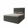 Das Boxspringbett NERO ist mit zwei großen Bettkästen ausgestattet, die durch einen praktischen Hebemechanismus leicht geöffnet werden können. Perfekt zur Aufbewahrung von Bettwäsche, Decken und Kissen.