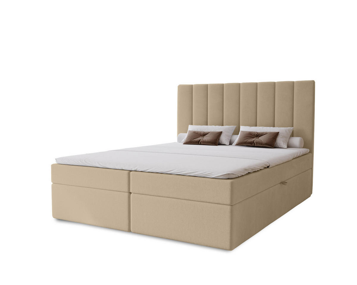 Marpur BOXBETT Nero mit 2 Bettkästen, 180x200, Creme, Velourstoff, Doppelbett mit Bonell-Matratze