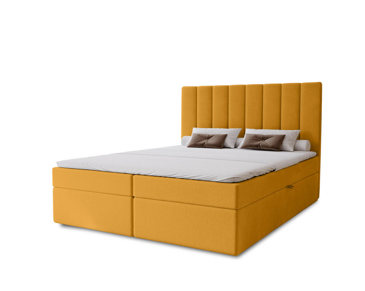 BOXBETT Nero mit 2 Bettkästen, 200x200, Gelb, Velourstoff, Doppelbett mit Bonell-Matratze - Gelb, Holz/Kunststoff (200/200cm) - Marpur