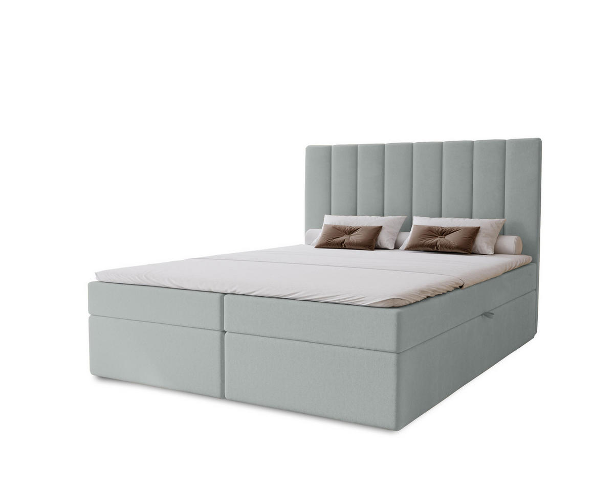 Das Boxspringbett NERO ist mit zwei großen Bettkästen ausgestattet, die durch einen praktischen Hebemechanismus leicht geöffnet werden können. Perfekt zur Aufbewahrung von Bettwäsche, Decken und Kissen.