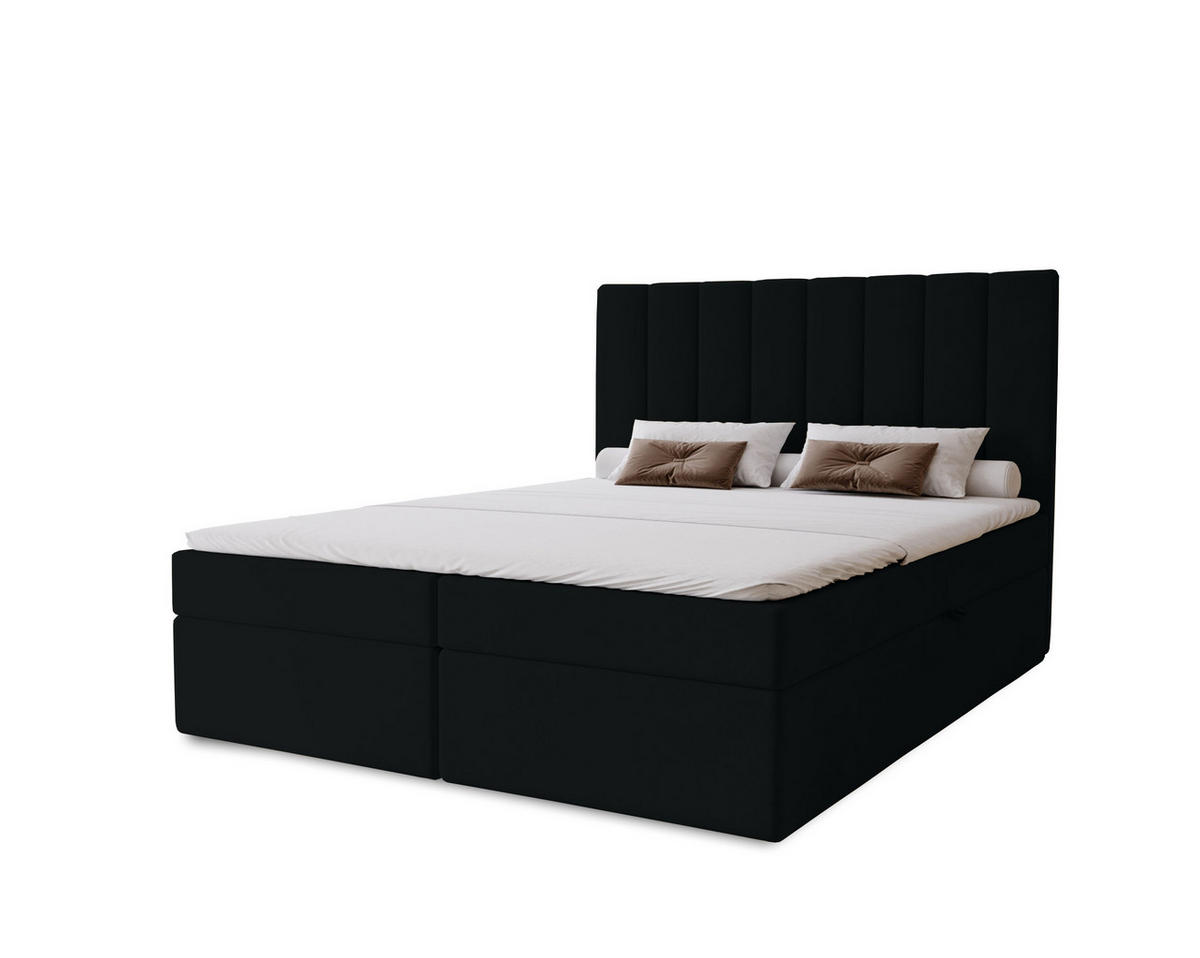 BOXBETT Nero mit 2 Bettkästen, 200x200, Schwarz, Velourstoff, Doppelbett mit Bonell-Matratze - Schwarz, Holz/Kunststoff (200/200cm) - MarpurMarpur