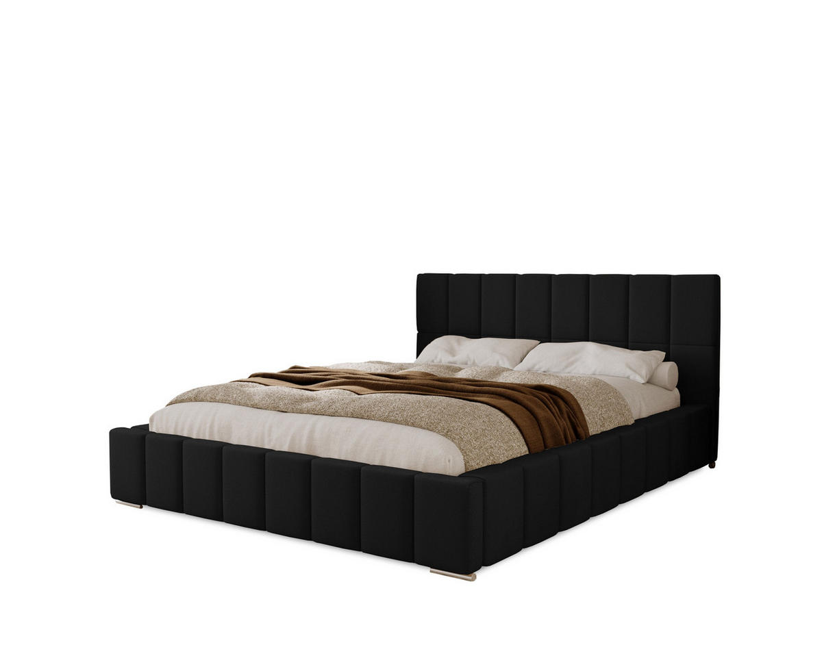 POLSTERBETT Alma 120x200 cm, Doppelbett mit Bettkasten und Lattenrost aus Holz, Velourstoff: Schwarz - Schwarz, Holz/Textil (120/200cm) - MarpurMarpur