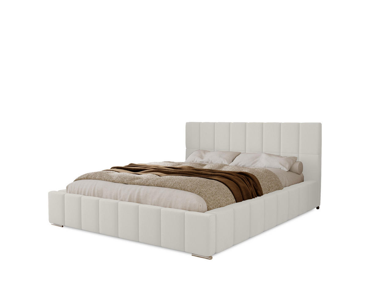 Marpur POLSTERBETT Alma 120x200 cm, Doppelbett mit Bettkasten und Lattenrost aus Holz, Velourstoff: Weiß