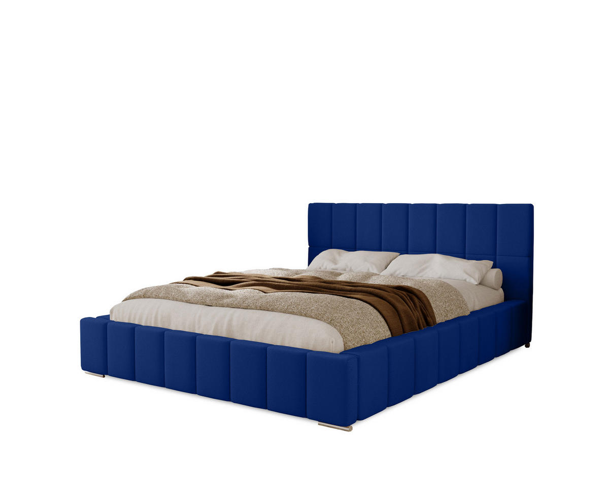 Marpur POLSTERBETT Alma 140x200 cm, Doppelbett mit Bettkasten und Lattenrost aus Holz, Velourstoff: Dunkelblau