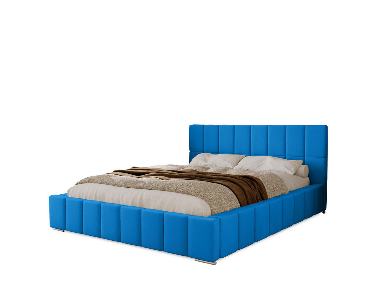 Marpur POLSTERBETT Alma 160x200 cm, Doppelbett mit Bettkasten und Lattenrost aus Holz, Velourstoff: Blau