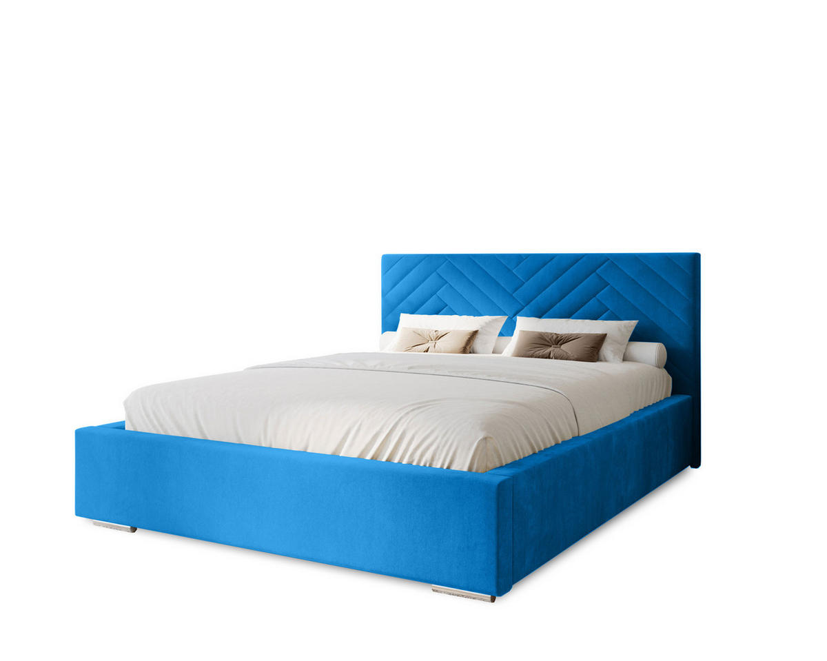 Marpur POLSTERBETT Aura 120x200 cm, Doppelbett mit Bettkasten und Lattenrost aus Holz, Velourstoff: Blau