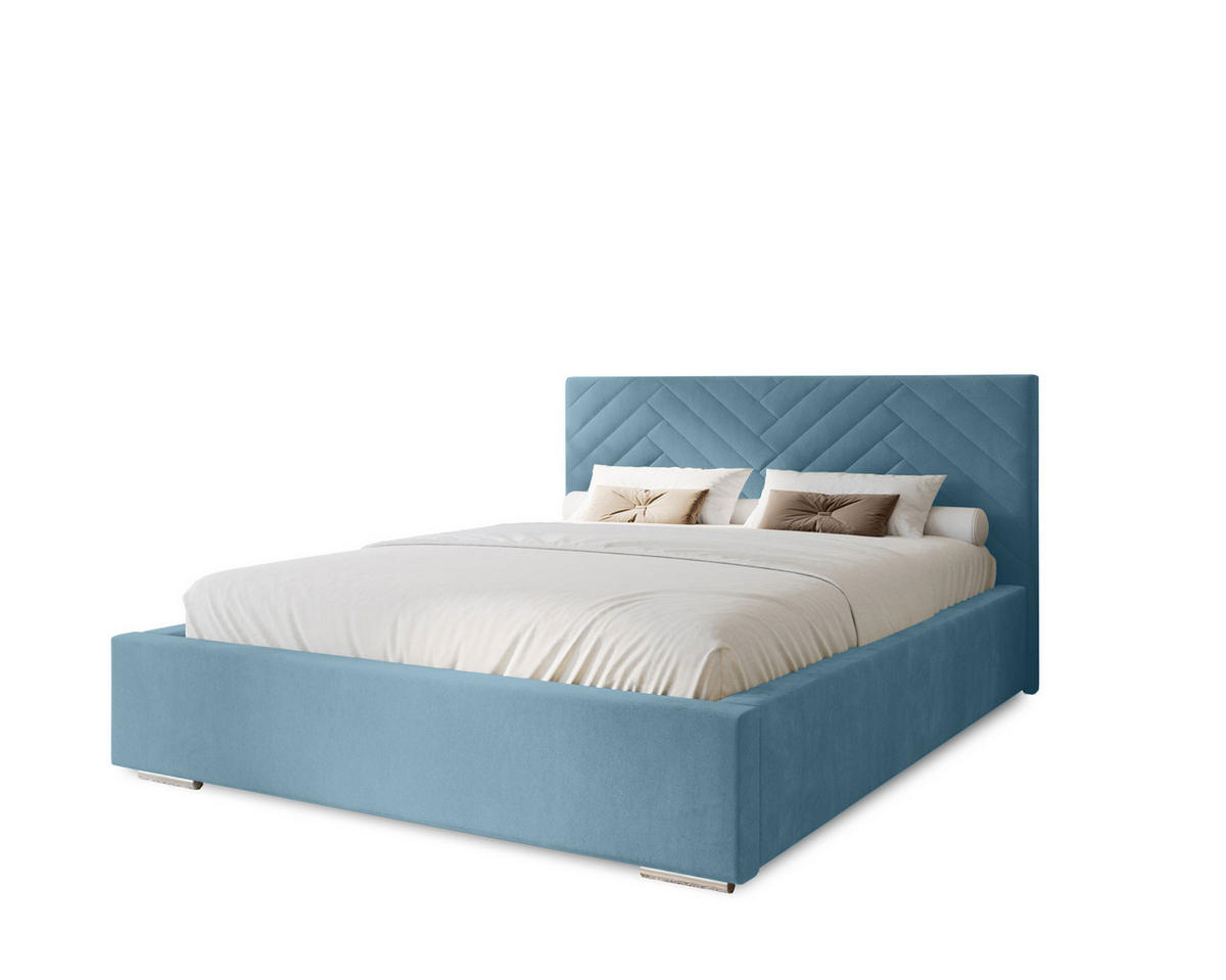 Marpur POLSTERBETT Aura 160x200 cm, Doppelbett mit Bettkasten und Lattenrost aus Holz, Velourstoff: Hellblau
