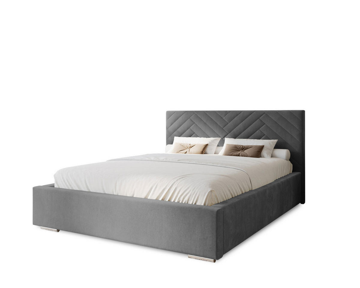 Marpur POLSTERBETT Aura 180x200 cm, Doppelbett mit Bettkasten und Lattenrost aus Holz, Velourstoff: Dunkelgrau