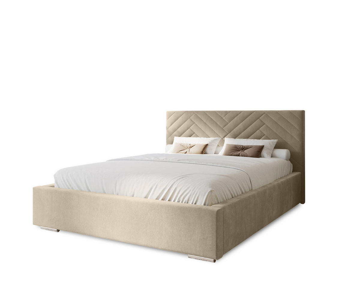 Marpur POLSTERBETT Aura 180x200 cm, Doppelbett mit Bettkasten und Lattenrost aus Holz, Velourstoff: Hellbraun