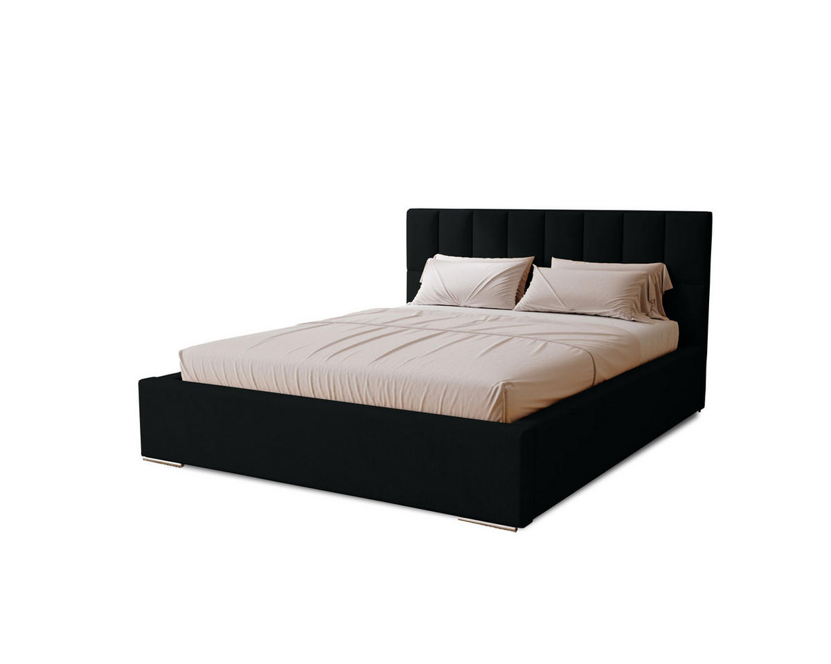 Marpur POLSTERBETT Dream 200x200 cm, Doppelbett mit Bettkasten und Lattenrost aus Holz, Velourstoff: Schwarz