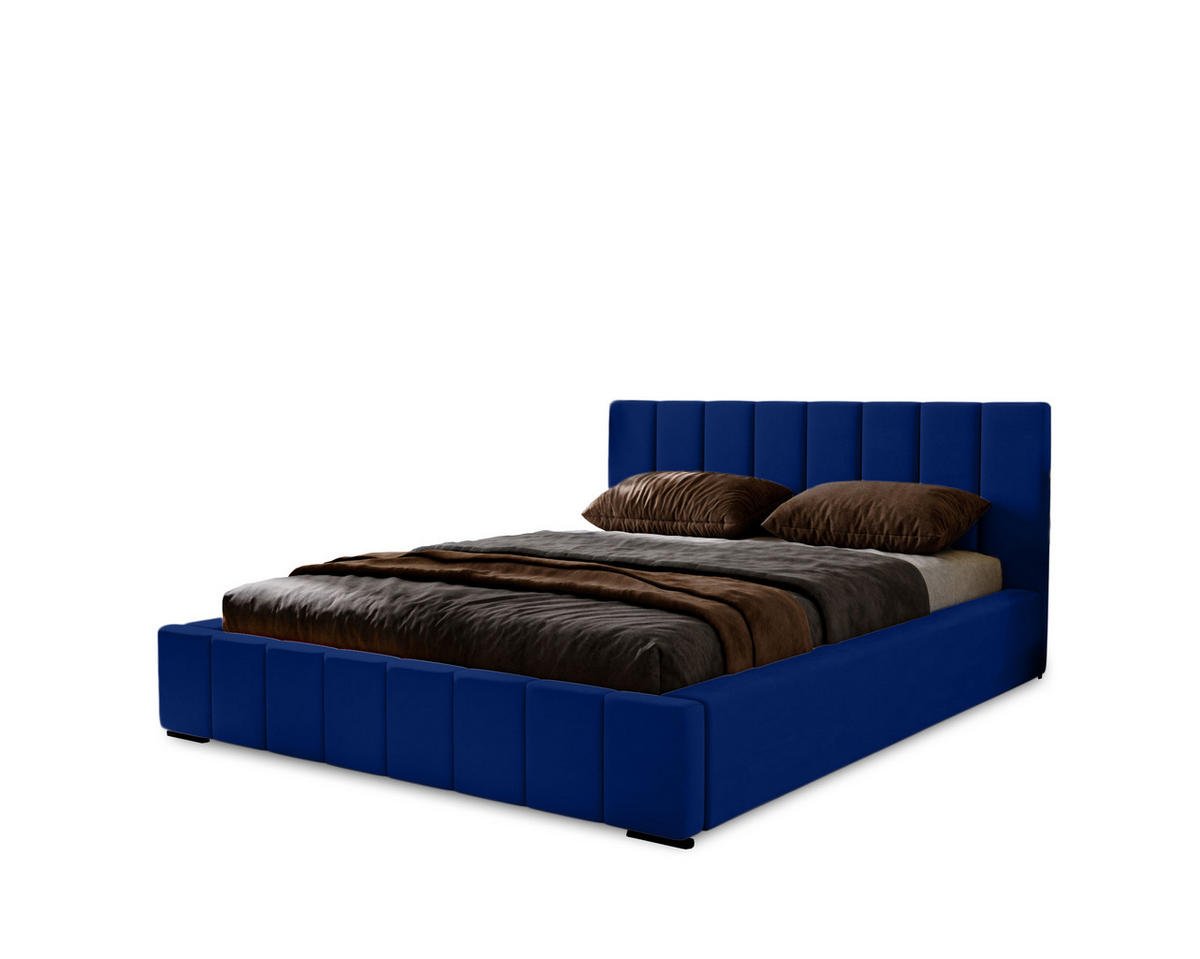 Marpur POLSTERBETT Nero 200x200 cm, Doppelbett mit Bettkasten und Lattenrost aus Holz, Velourstoff: Dunkelblau