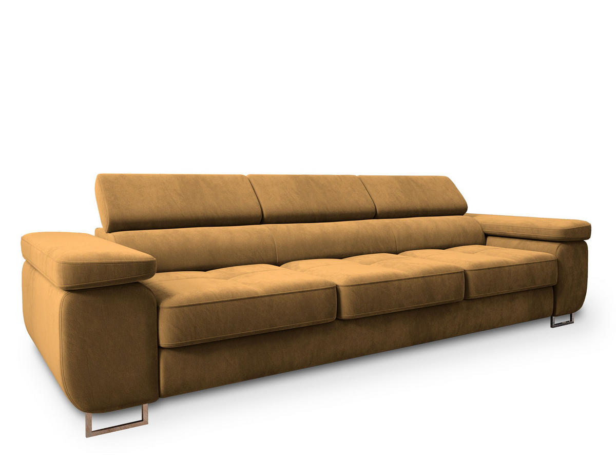 BETTSOFA MOSINE Gelb Velours-Stoff mit Schlaffunktion - Gelb, Textil (281/87/98cm) - MASSENOMASSENO