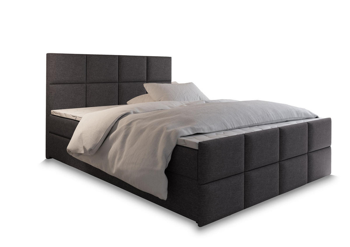 MASSENO BOXBETT ARIEL 180x200 cm mit Matratze und Topper - Grau