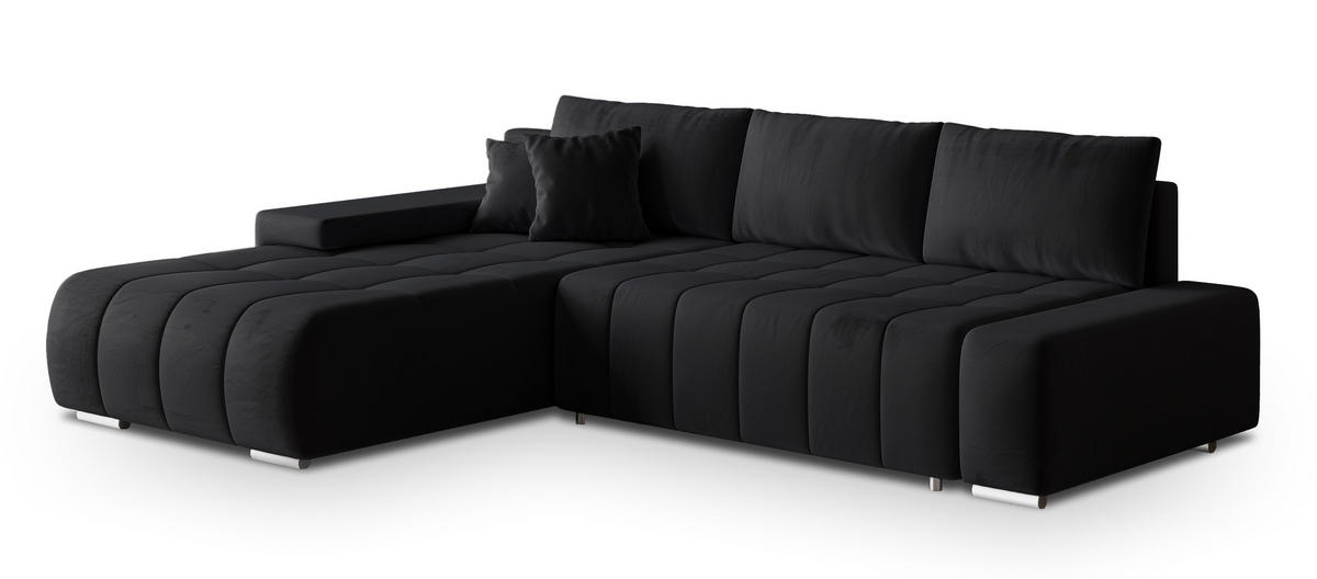 MASSENO ECKSOFA ALESE L-S Schwarz Velours-Stoff mit Schlaffunktion