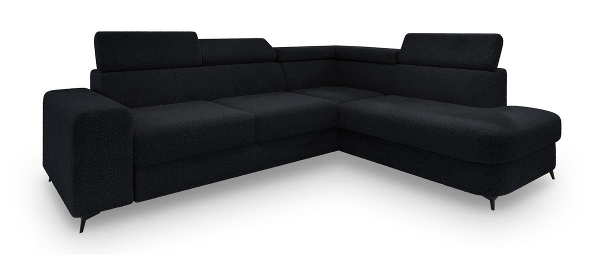 MASSENO ECKSOFA ALVORO R-S Schwarz Boucle-Stoff mit Schlaffunktion