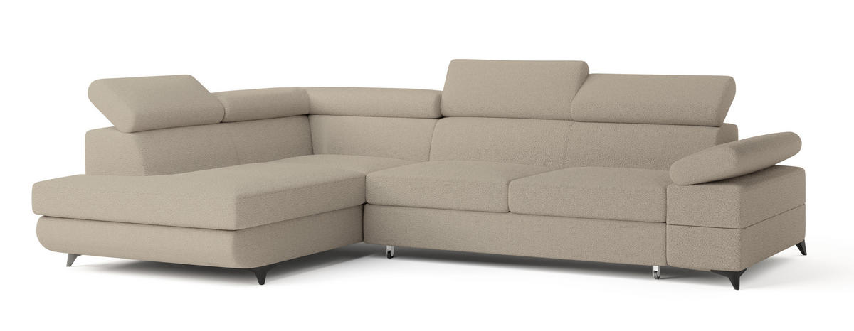 MASSENO ECKSOFA FAVIEN L-S Beige Boucle-Stoff mit Schlaffunktion