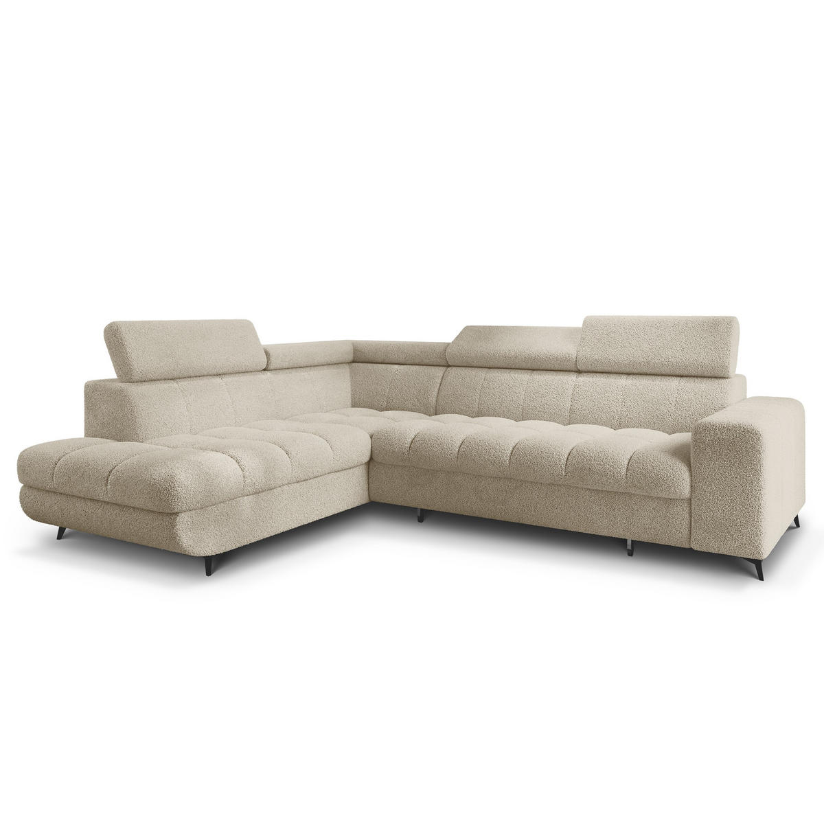 MASSENO ECKSOFA MORIVA Q L-S Creme Boucle-Stoff mit Schlaffunktion