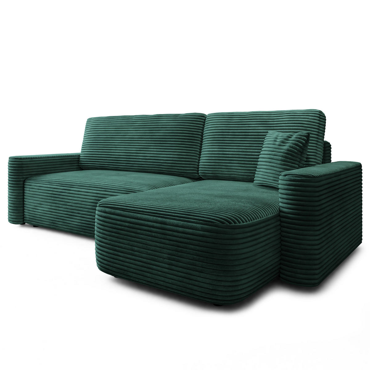 MASSENO ECKSOFA NERI T Grün Kordstoff mit Schlaffunktion