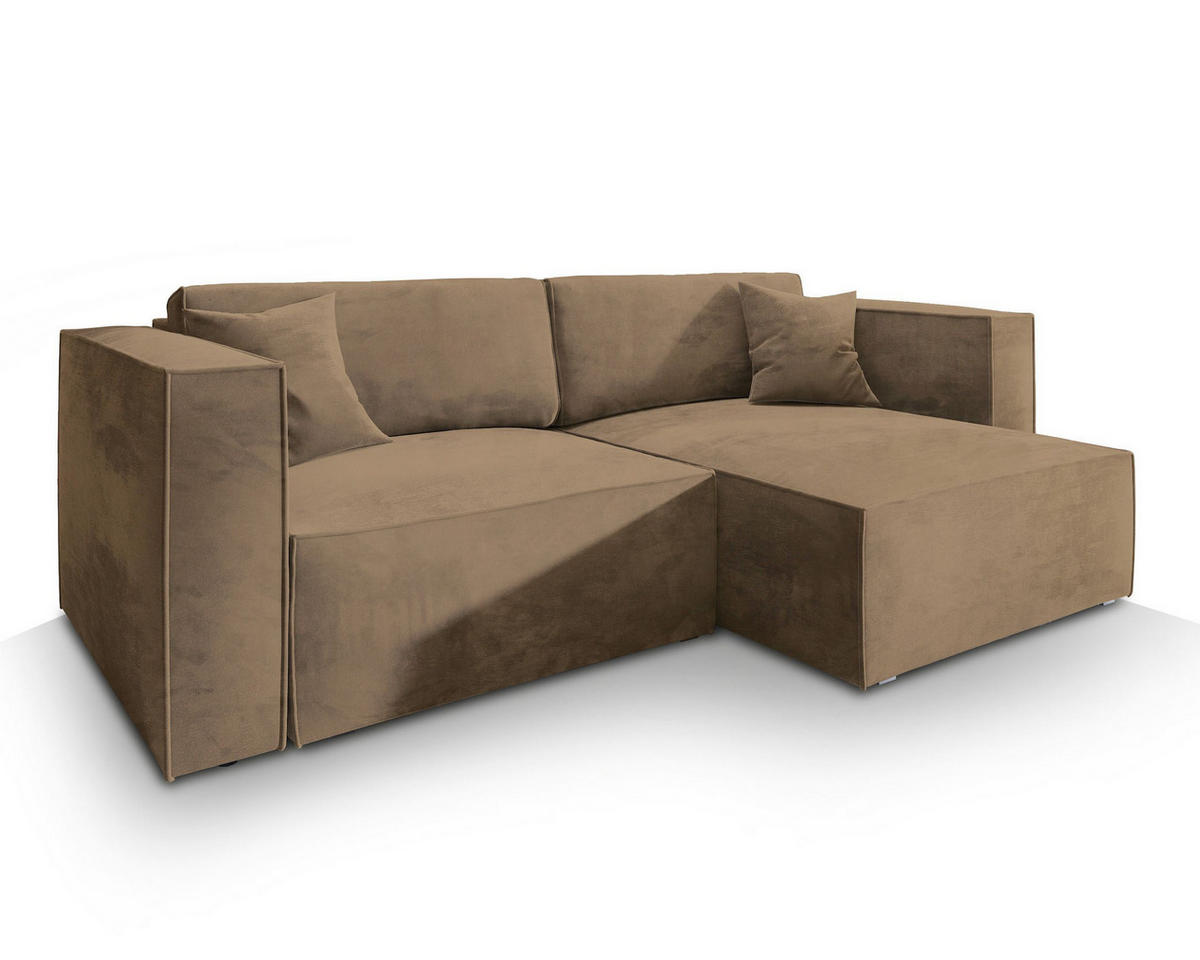 MASSENO ECKSOFA NERIO M Beige Velours-Stoff mit Schlaffunktion