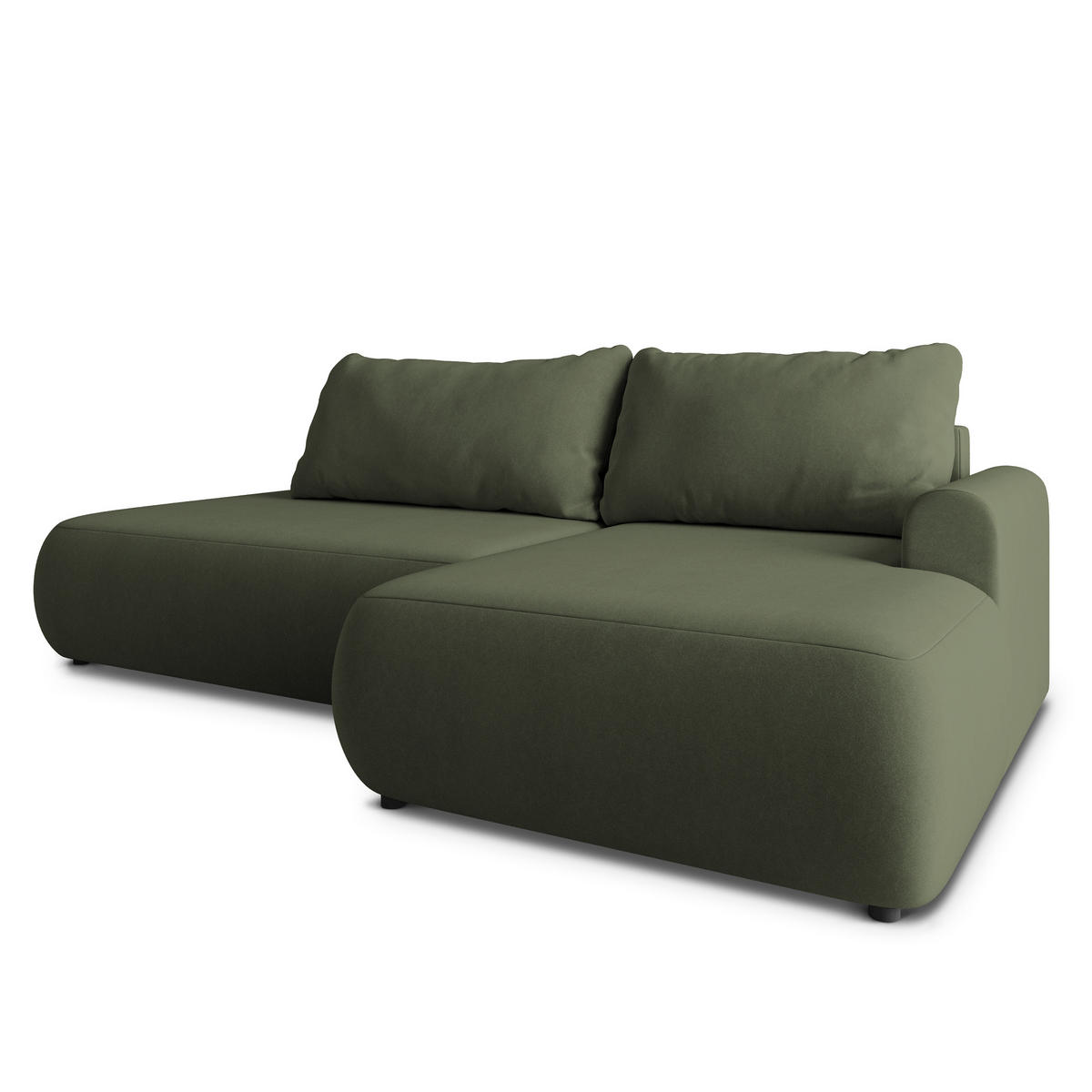 ECKSOFA NUVIRA CL R-S Olivgrün Samtstoff mit Schlaffunktion - Olivgrün, Holzwerkstoff/Textil (279/158cm) - MASSENO