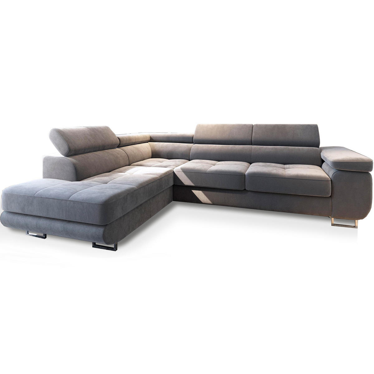 MASSENO ECKSOFA SELVA L-S Hellgrau Velours-Stoff mit Schlaffunktion