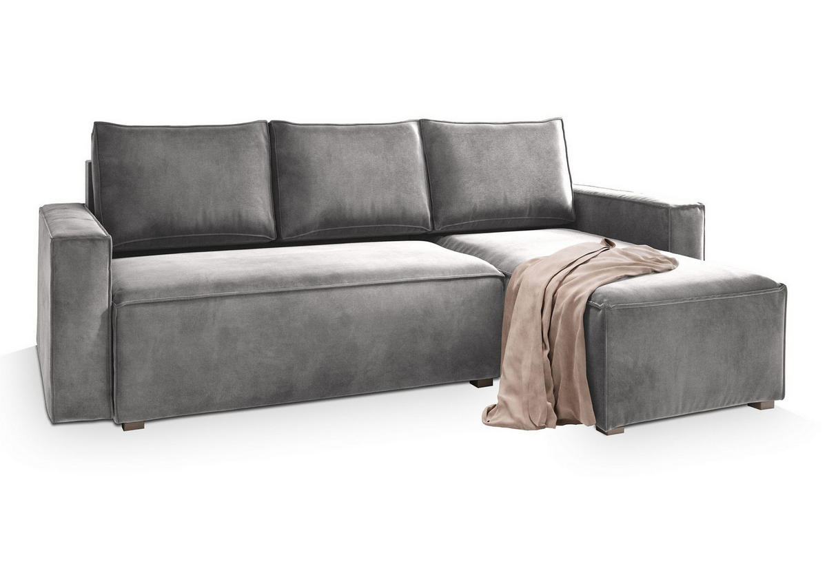 MASSENO ECKSOFA SILES Hellgrau Velours-Stoff mit Schlaffunktion